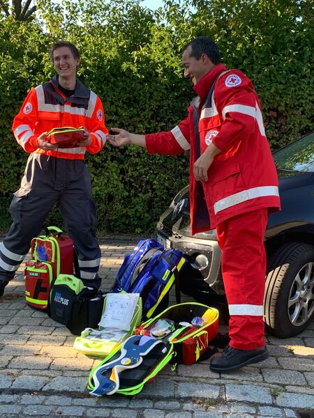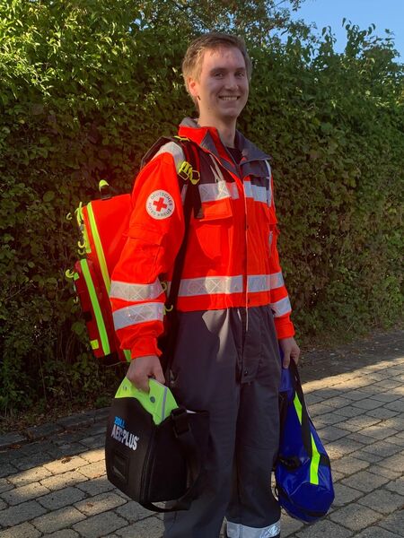 Private Anrufe bei den HvO aber nutzen nichts, denn das Szenario für den Einsatz eines HvO ist immer dasselbe: Der Helfer/die Helferin wird zeitgleich mit dem Rettungsdienst alarmiert, nachdem bei der Rettungsleitstelle ( über die Tel. Nr. 112) ein Notruf eingegangen ist. Anhand von GPS Daten ermittelt das Leitsystem, wie weit entfernt der nächste Rettungswagen ist. Gegebenenfalls übernimmt dann der Helfer vor Ort die Erstversorgung. Denn oft geht es wirklich um Minuten. Dieter Meschenmoser hat nicht nur die neuesten Zahlen dabei -nämlich, dass der Kreisverband Ravensburg im Jahre 2019 gut 2000 Einsätze gefahren istsondern auch ein dickes Lob für Bergs Bürgermeisterin. „Das DRK sagt herzlichen Dank dafür, dass Manuela Hugger die Initivative ergriffen hat, so ist trotz Corona praktisch in Lichtgeschwindigkeit die HvO-Gruppe in Berg entstanden“, freut sich Meschenmoser. Übrigens ist Berg die 30. Gruppe der auch „first responder“ genannten Ersthelfer. Falls sich nun der eine oder die andere fragt, wie man Helfer-vor-Ort wird: Grundsätzlich ist es auch ohne jegliche Vorkenntnisse möglich, HvO zu werden. „Allerdings muss Interesse an einer medizinischen Grundausbildung bestehen und die Bereitschaft da sein, sich über eine Sanitätsausbildung die nötigen Kenntnisse anzueignen“, erklärt Melanie Schmid vom Ortsverband Weingarten. Auf der Homepage des DRK finden sich die genauen Informationen: „Die ehrenamtlichen Lebensretter legen einen Erste Hilfe Kurs mit acht Doppelstunden sowie eine Sanitätsausbildung mit 64 Stunden ab. Darüber hinaus erhalten sie eine Schulung in der Herz-Lungen-Wiederbelebung und eine Einweisung in die Frühdefibrillation. Während ihrer Ausbildung sammeln die Helfer-vor-Ort praktische Erfahrungen im Rettungswagen, auch danach bilden sie sich stets fort.“ Oder man stösst - wie Marco Hujer - als FSJler zum Rettungsdienst und bleibt auch danach dabei. Der Gemeinderat in Berg hat zugestimmt, dass die Gemeinde für jeden Ersthelfer Kosten in Höhe von 2000 Euro übernimmt, für die das notwendige Sanitätsmaterial, der Notfallrucksack sowie der Defibrillator angeschafft werden. Die weiteren Kosten in Höhe von 1000 Euro für einen persönlichen Schutzanzug und den Piepser trägt das DRK.
